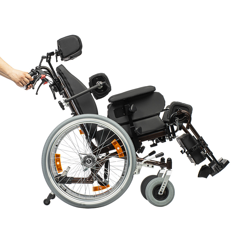 - Сиденье вместе со спинкой, плавно регулируемые по углу наклона при помощи рычагов на ручках для сопровождающего лица