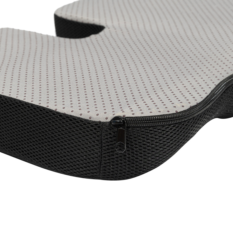 Специальный вырез в задней части подушки снижает нагрузку на копчик и облегчает течение деликатных заболеваний, а гелевый слой обеспечивает эффект охлаждения, снижает потоотделение.